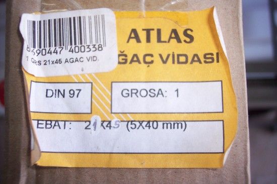 Kimine göre net / gross tabirinden gelen brüt ağırlığı idi kutunun. Kimilerine göre yabancı bir ölçü, çünkü vidanın ölçüsüde anlaşılmaz idi: 22×70 veya 19 x 20 . Ne demekti bunlar ? Bazıları ezbere bilinirdi: 17 x 17 piyano menteşenin deliğinden geçen vida; 21 x 70 zor bulunurdu ama 8 mm lik dübel ile çok iyi ve kolay iş görürdü. 22 x 80 sıkması zor olurdu.