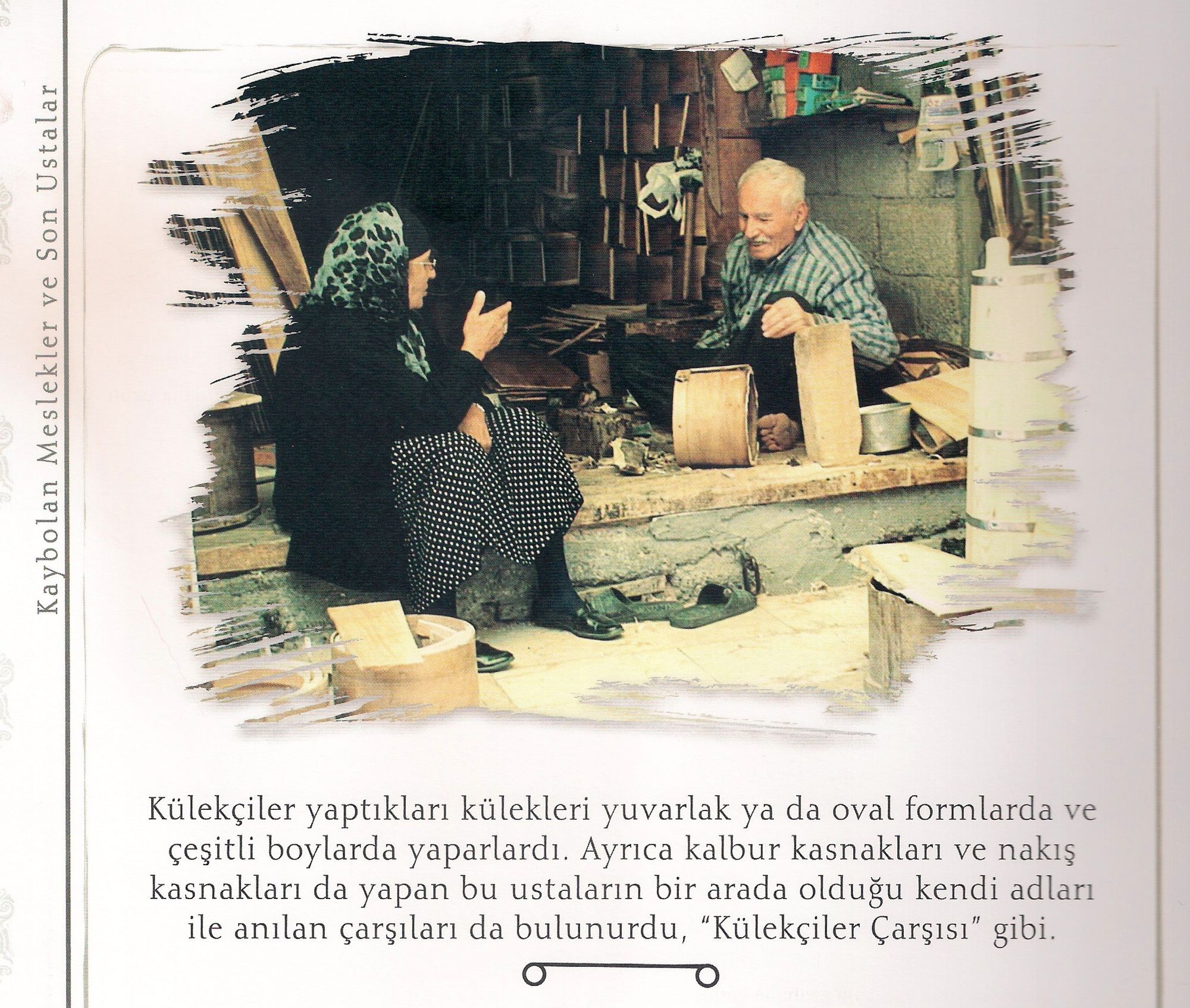 Evdeki kitaplarım arasında bulunan “Kaybolan Meslekler ve Son Ustalar ” sayfa 216. Yazarı aslında bir ressam olan ve bir dizi kaybolan meslek ustasının yağlıboya tablosunu bir araya getirerek bu kitabı oluşturan M. Ali Diyabakırlıoğlu. İstanbul Ticaret Odası yayınlamış. Kendisinin web sayfası vasıtası ile bu yazı dizisinin ve resimlerin tamamına göz atma imkanınız olacaktır. Muhakkak ziyaret ediniz ve hatta mümkün ise kitabını alınız. Burada diyor ki: